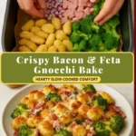 A hearty and comforting casserole-style bake featuring tender gnocchi, crispy bacon, and creamy feta cheese, perfect for family dinners or potlucks.